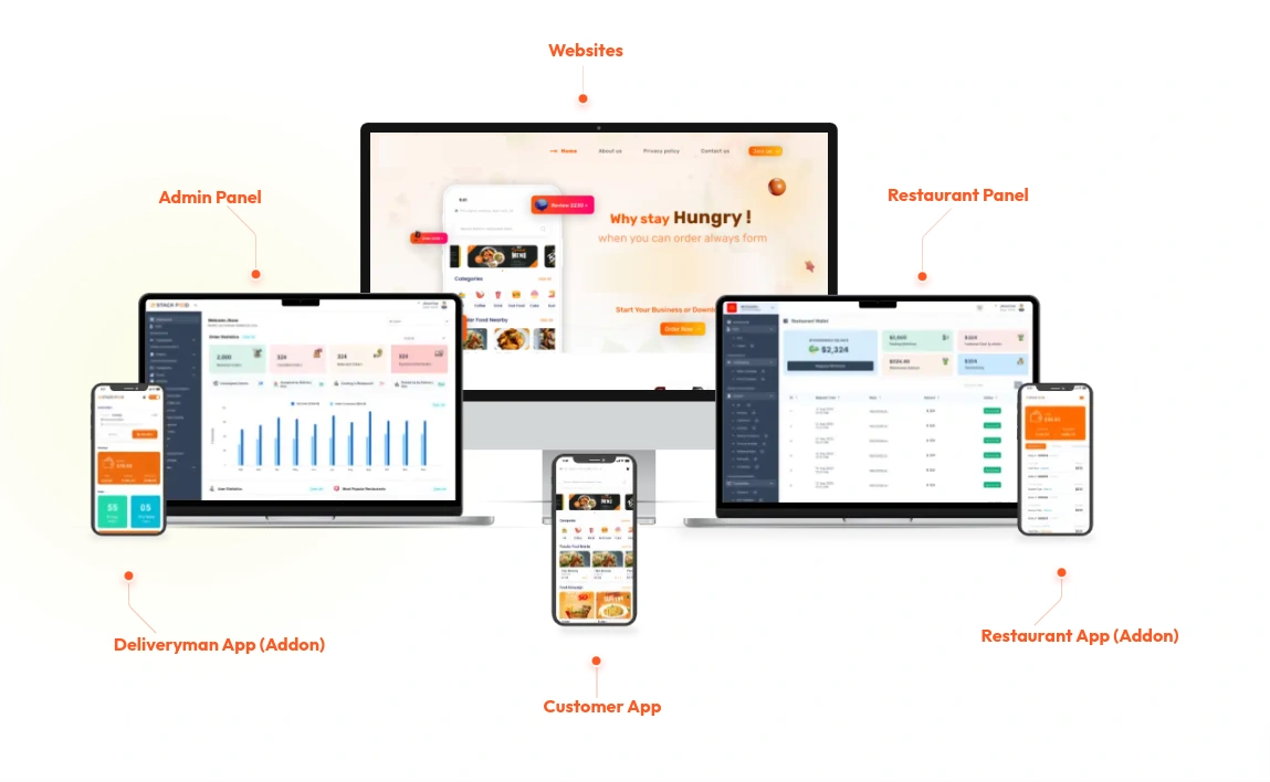 The Admin Panel/Dashboard helps restaurant owners to manage the complete place order & delivery process and provides you with complete control and insights.
